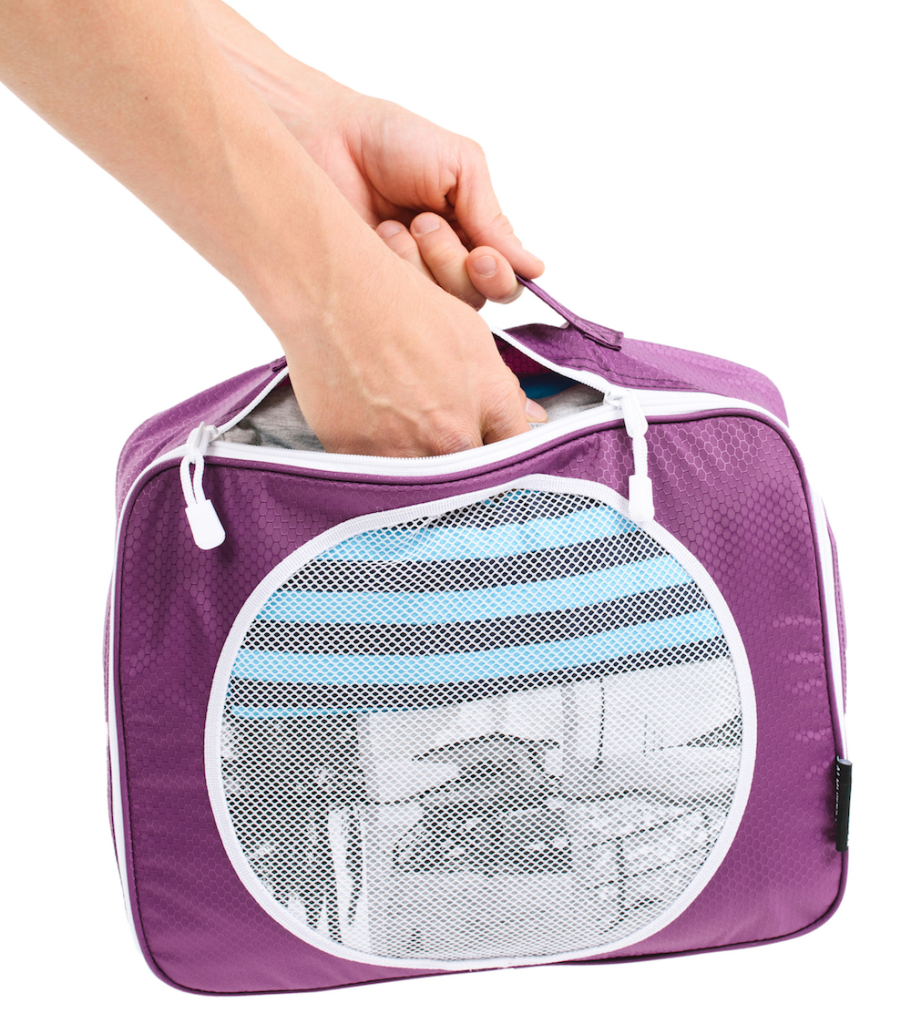 If you’re going on an overseas trip pack one outfit to take with you in your carry-on bag just in case your checked luggage doesn’t make it with you to the destination. Protect your underwear and other personal items so aren’t spread all over for everyone to see if your bag is inspected by the TSA security. The small cube is also great for keeping your electronic cords and chargers all together in one place. Or storing your in-flight essentials for handy access at your seat, while your main carry-on bag is in the overhead locker.