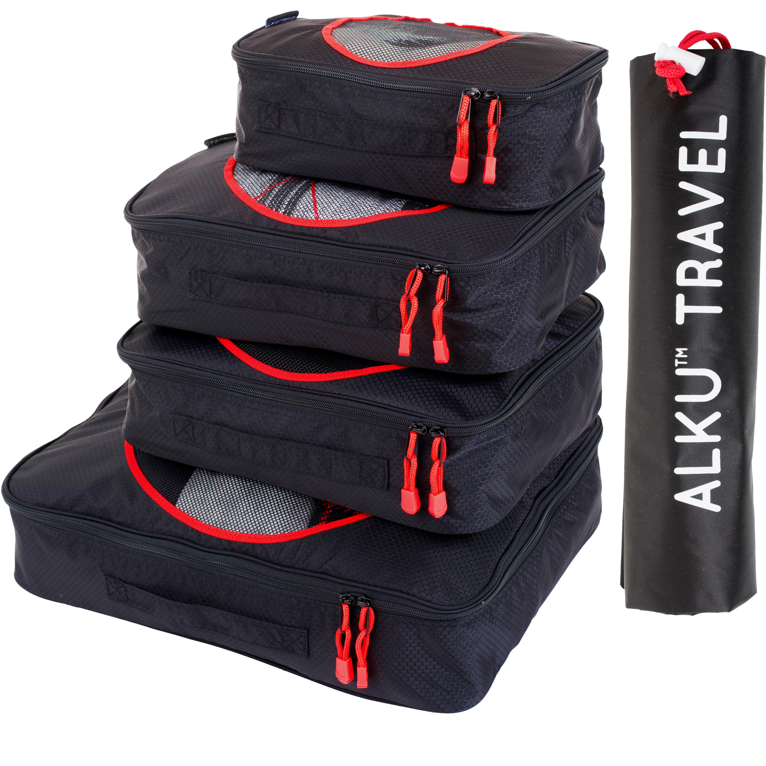 Alku™ Travel Packing Cubes – 4 Pcs Travel Organizer Set with Carry-on Shoe/Laundry Bag
